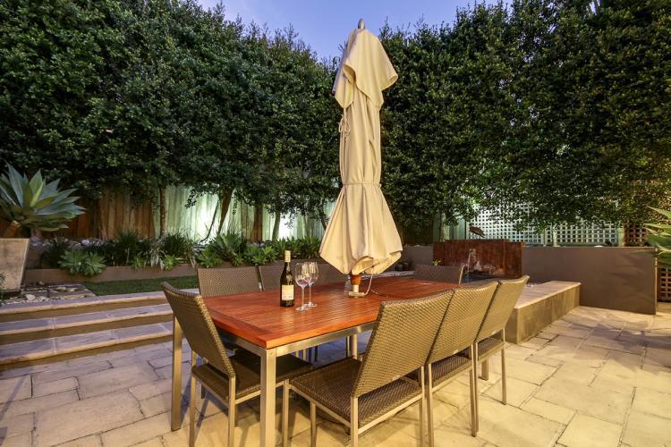 • Lower Terrace has a courtyard dining area with a water feature