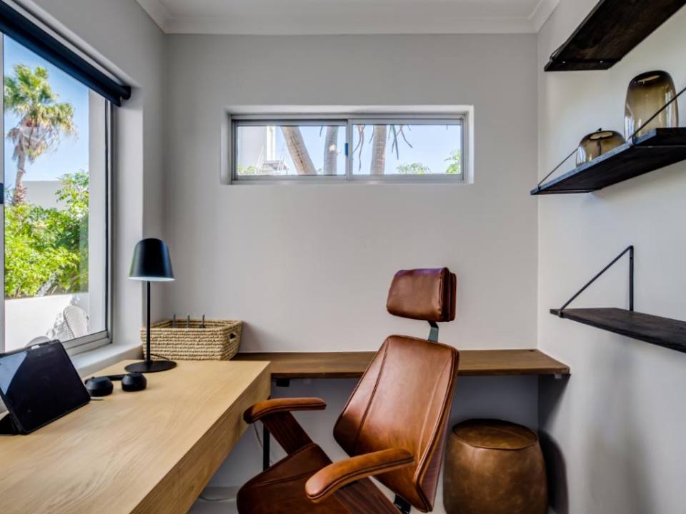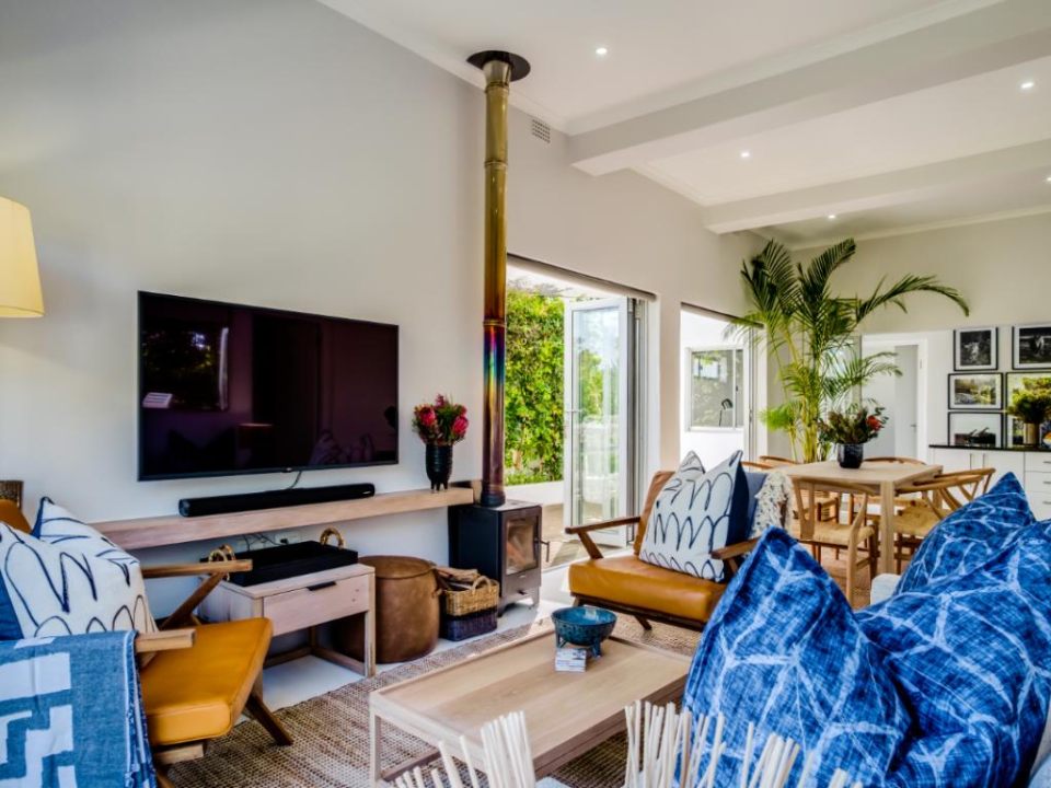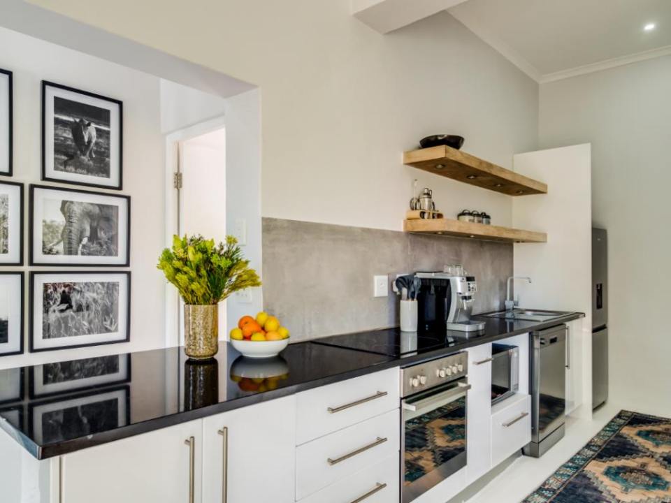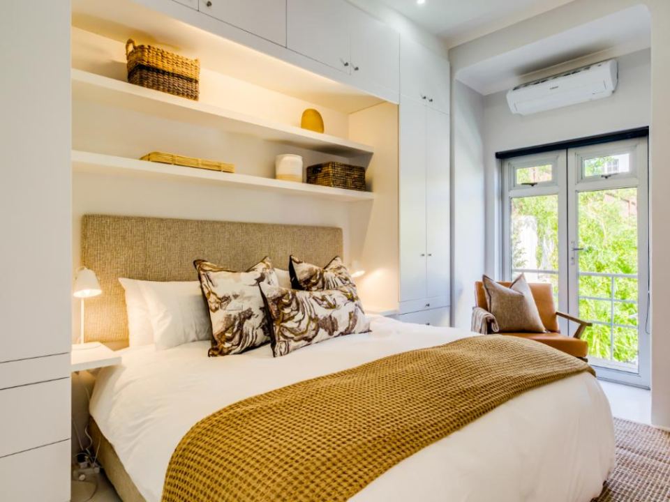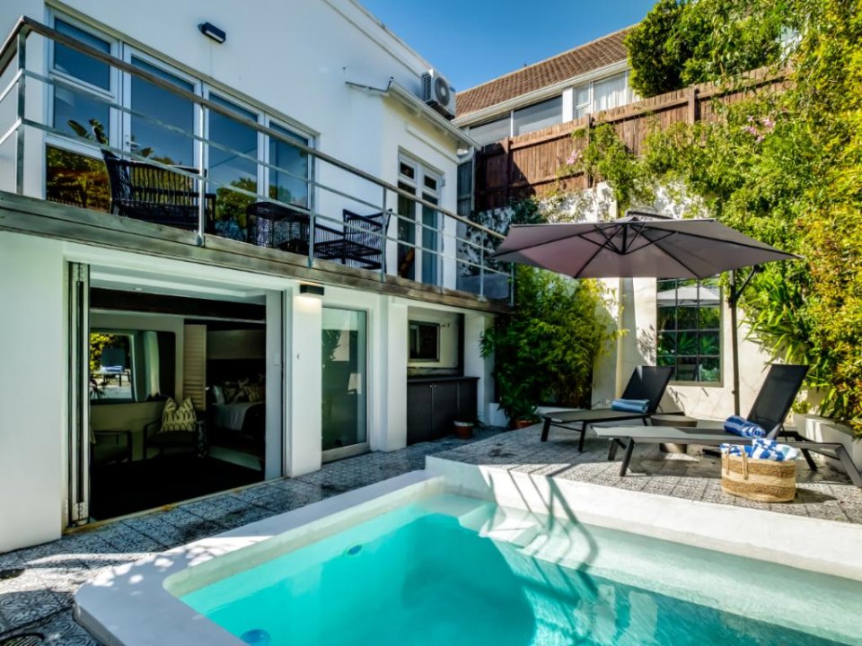 This contemporary 3 bed cottage provides privacy, a private swimming pool and sun deck, and all the modern touches you need. A short walk from the Sea Point promenade, restaurants, shops and cafes. The main living and dining area is open plan and consists of a fully-equipped kitchen, a dining area with seating for six and a TV lounge with plenty of seating. Doors open onto a balcony with views of the pool and sun patio. There is a patio deck with outdoor dining accessed with foldaway doors off of the main dining area. The pool entertainment area is a wonderful private wind-free area with gas braai and sun-loungers. Each of the bedrooms boasts a high-quality hotel-grade bed, plenty of cupboard space and an en-suite bathroom. The master bedroom opens onto the balcony, while the downstairs bedroom opens onto the pool area.