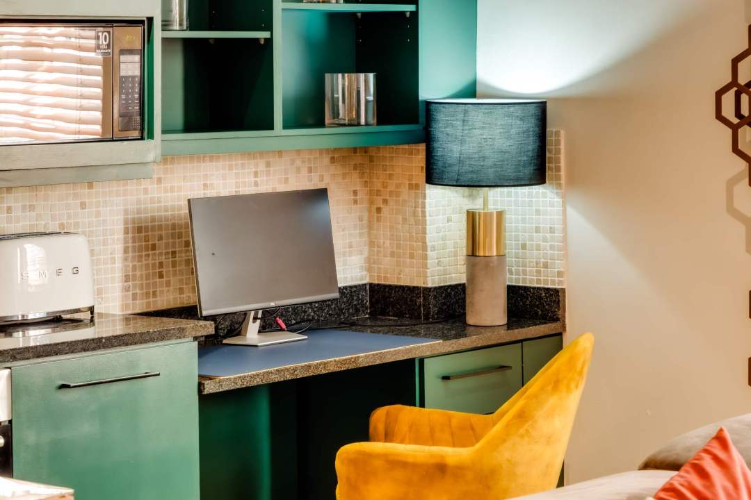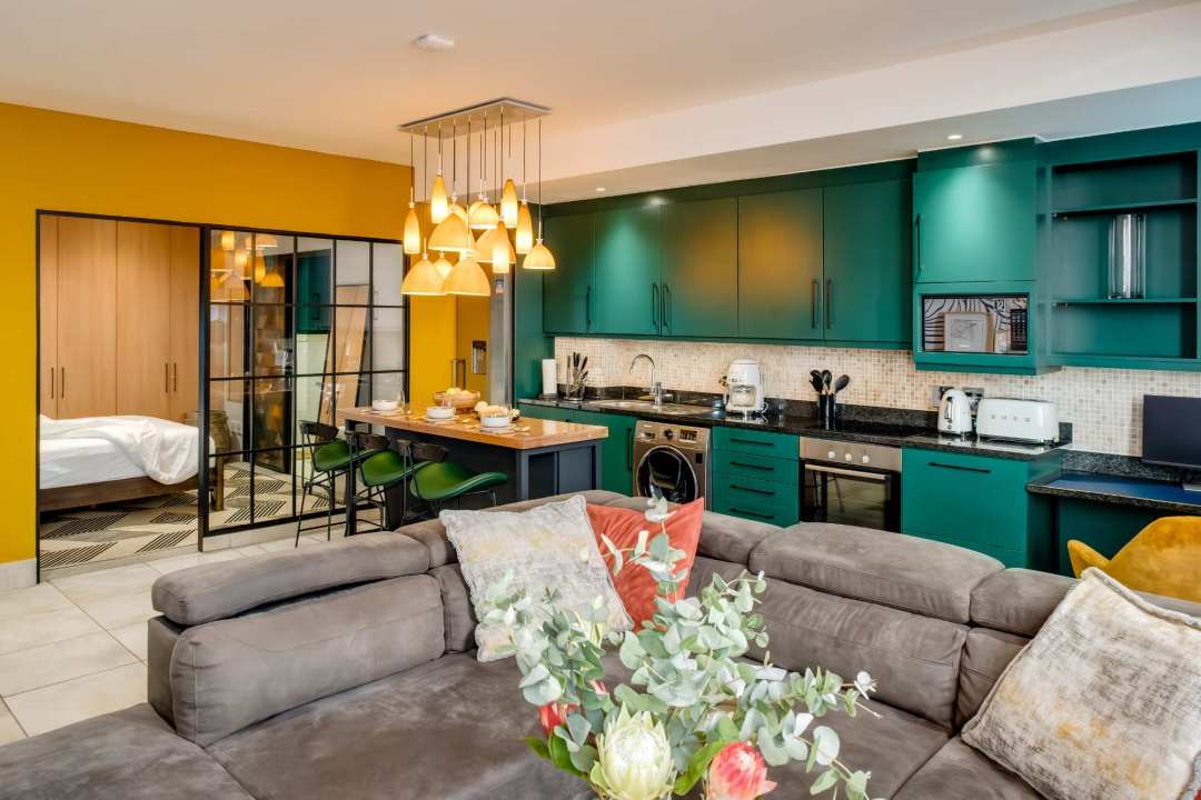 Jade Place is a bright and beautifully designed apartment located in the heart of Cape Town’s city centre. With its contemporary open-plan layout, this modern retreat offers the perfect urban escape. The spacious main bedroom features a plush queen bed and an ensuite bathroom with a sleek shower and single vanity, creating a serene environment for rest and relaxation. The stylish kitchen is fully equipped with an electric hob, a filter coffee machine, and a breakfast bar for three, making it ideal for casual dining or enjoying your morning coffee. A dedicated desk space is perfect for those needing a quiet work area. The comfortable living area seats four, with a TV for entertainment and a portable aircon unit to ensure your comfort in the warmer months. With 24-hour building security, Jade Place offers peace of mind and a seamless stay in Cape Town’s vibrant City Centre. Perfect for couples or solo travelers, this chic apartment combines modern convenience with a prime city location, just steps from Cape Town’s best attractions, restaurants, and nightlife.
