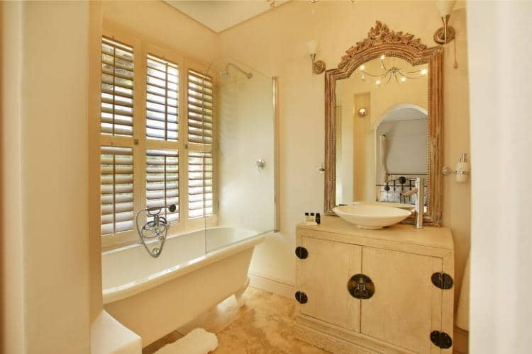 Bathroom en suite with Victorian bath and Shower over the bath