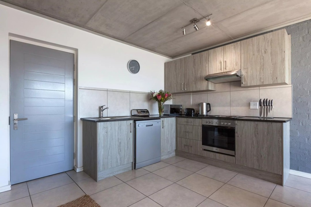 With an open-plan studio layout with architect-designed interior features, this spacious and naturally well–lit apartment can accommodate up to four guests with a double bed and sofa bed in the living room. The kitchen is equipped with all the essentials, including a dishwasher, oven and hob, microwave, kettle, and toaster. Additional to the comfortable living room furniture, guests can enjoy a movie whilst staying in bed as the apartment offers a flat-screen mounted TV with DSTV (compact package).