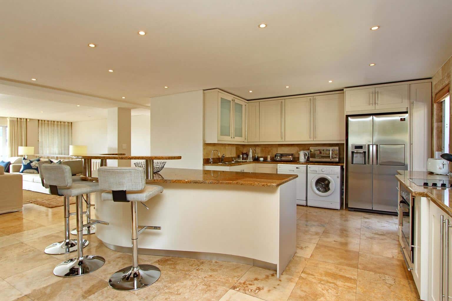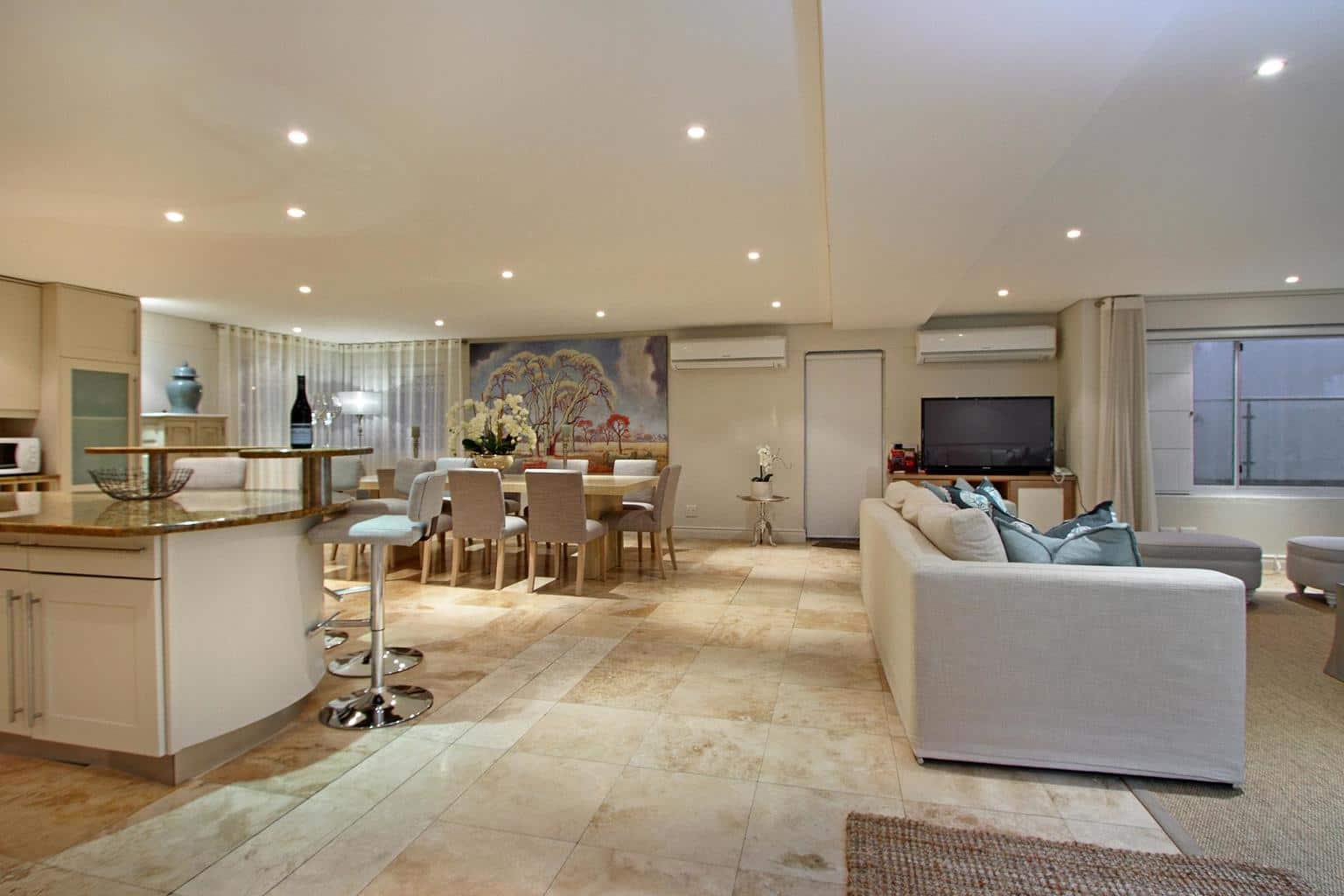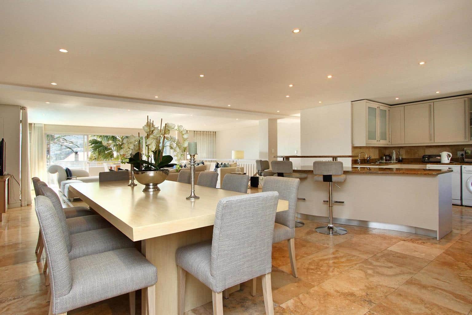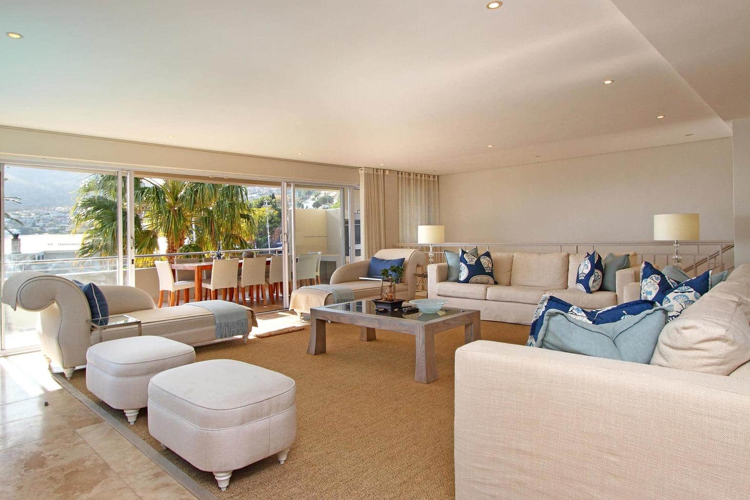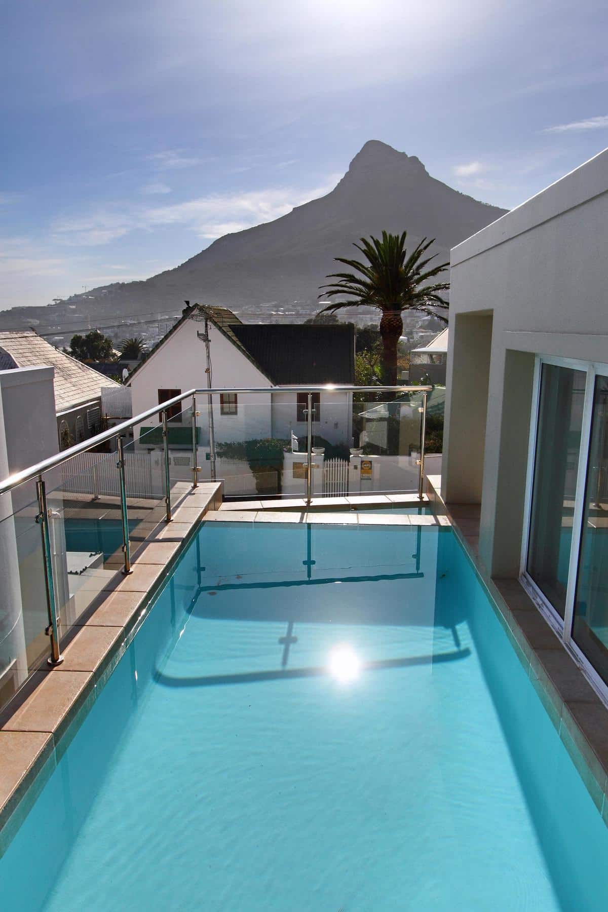 A wonderfully elegant, yet family-friendly property on the slopes of Camps Bay’s Geneva Drive, Kezia offers home-away-from comfort. Just a short walk from the palm-fringed beach, the house boasts three bedrooms, a lovely entertainment area and lounge with open-plan kitchen and sunny terrace with private swimming pool.