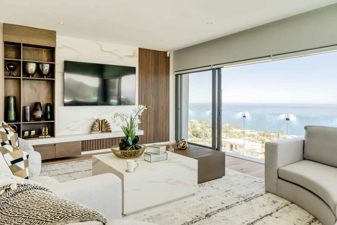 Khalanga Penthouse is a chic and stylish penthouse located on the slopes of the Twelve Apostles in Camps Bay, offering stunning sea and mountain views. With a sleek design and premium features, this modern retreat is perfect for those seeking comfort and sophistication. The main bedroom boasts a king-sized bed, aircon, and access to a balcony with a pool, along with a lavish ensuite that includes a bath, shower, bidet, and double vanity. Two additional bedrooms, each with aircon and beautiful sea and mountain views, share a spacious bathroom with similar high-end amenities. The open-plan kitchen features a gas hob, bean coffee machine, and breakfast bar for three. The living and dining areas, complete with aircon and seating for nine, lead to the outdoor balcony. Here, you’ll find a pool, sun loungers, and a gas BBQ, all set against the backdrop of Camps Bay’s breathtaking scenery. With an inverter for power security and a state-of-the-art alarm system, Khalanga Penthouse combines style, comfort, and peace of mind for a memorable stay in one of Cape Town’s most exclusive neighbourhoods.