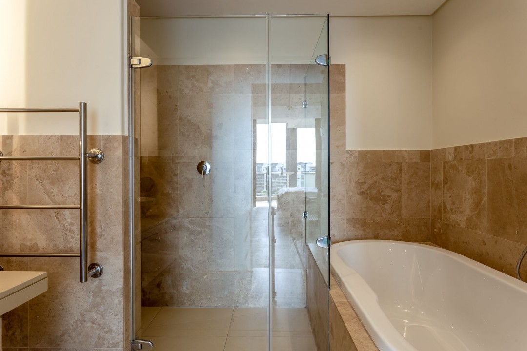Kylemore 501 is a gorgeous three bedroom apartment on the 5th floor, giving you spectacular views across the waterfront and beautiful views of our iconic Table Mountain. Decored in modern greens and blues, this apartment has been set up for comfort and elegance. Every detail has been taken care of in this modern apartment. With three large bedrooms and three bathrooms, this apartment will suit a family as well as friends travelling together.