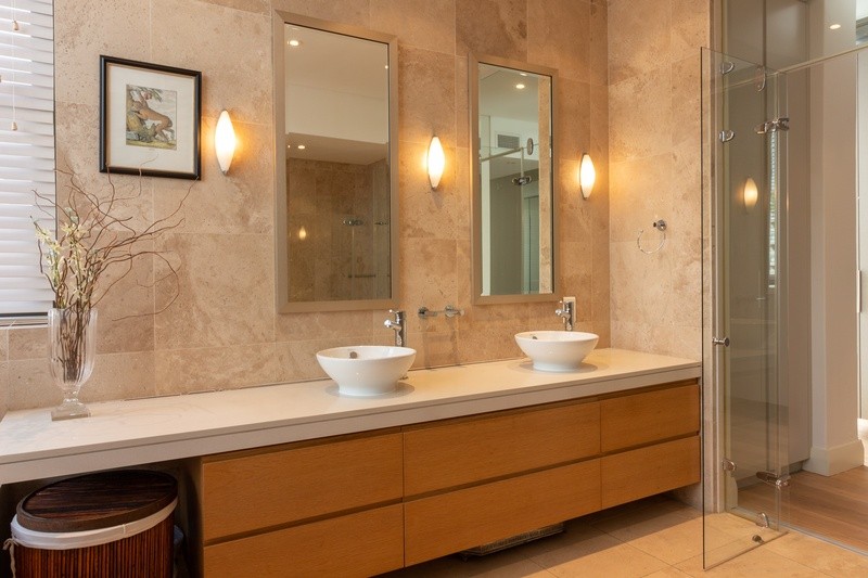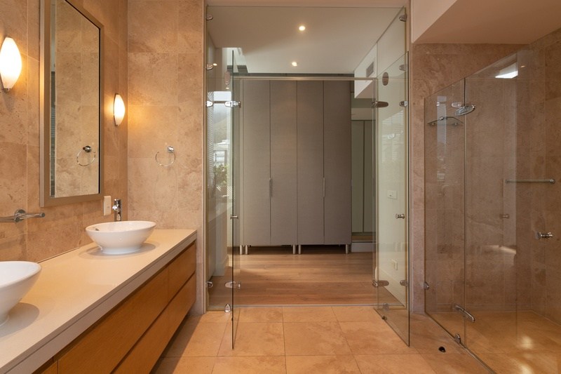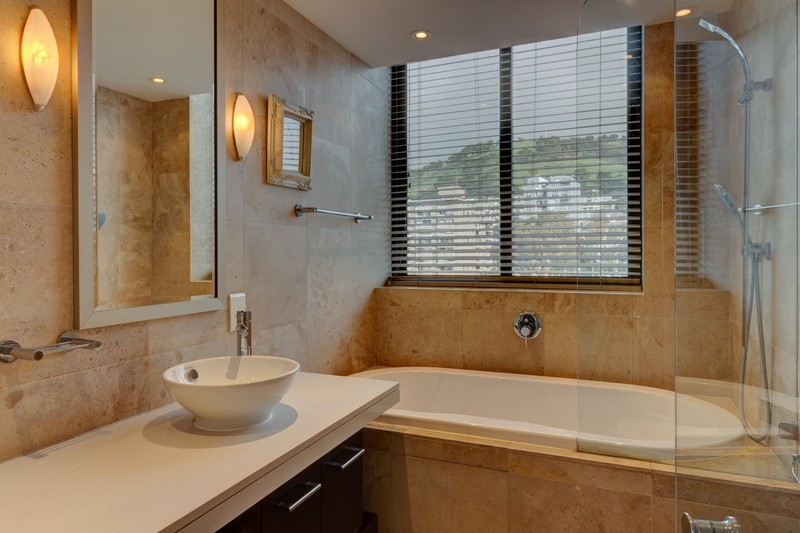 Main en-suite bathroom with shower and bath