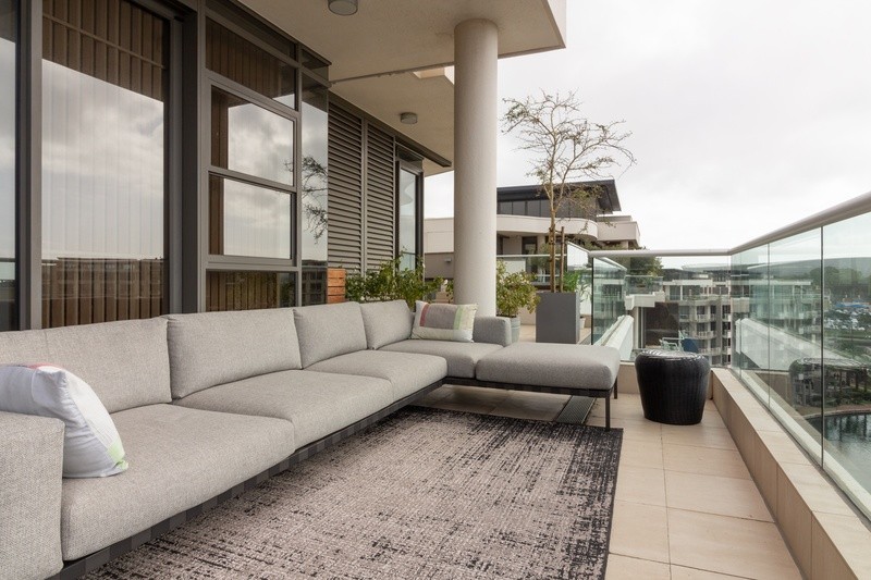 An epitome of elegance this apartment offers it all. The apartment has three bedrooms, all with en-suite bathrooms. All bedrooms have magnificent views of the marine waterways and beyond. All bedrooms open up to the incredibly large balcony. The formal lounge/dining area is flooded with sunlight due to the incredibly high ceilings and skylights, which makes the space expansive, open and airy. Leading off from the formal lounge is a well-equipped kitchen with all amenities.