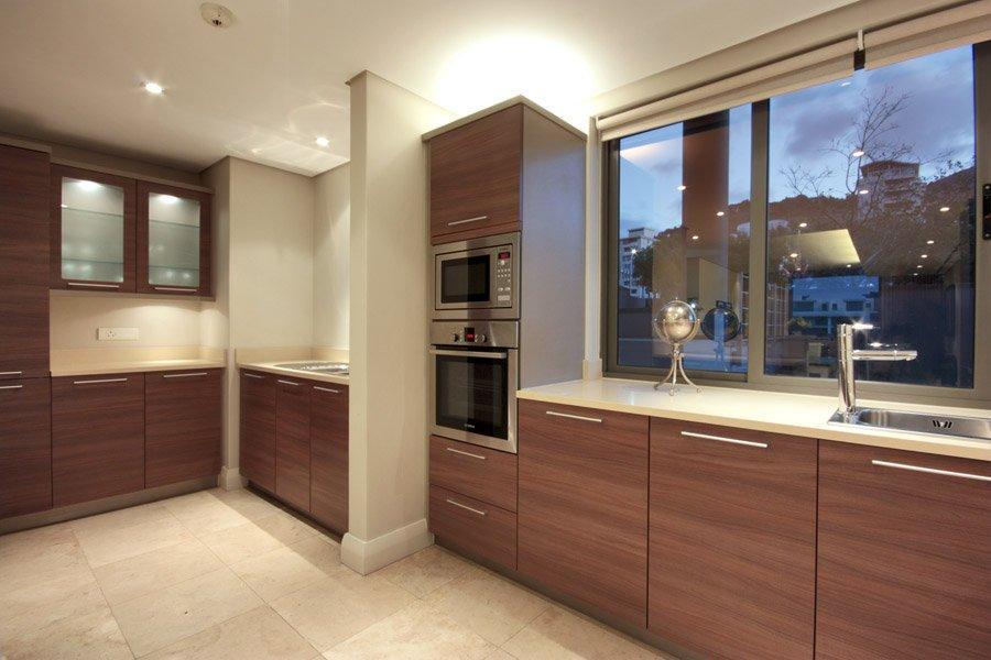 The kitchen of this Cape Town Waterfront rental is large and filled with top quality appliances; fully equipped for your stress-free self catering vacation.