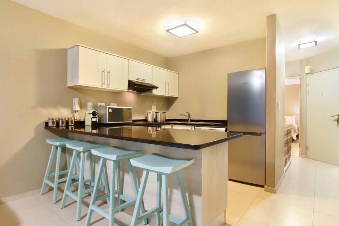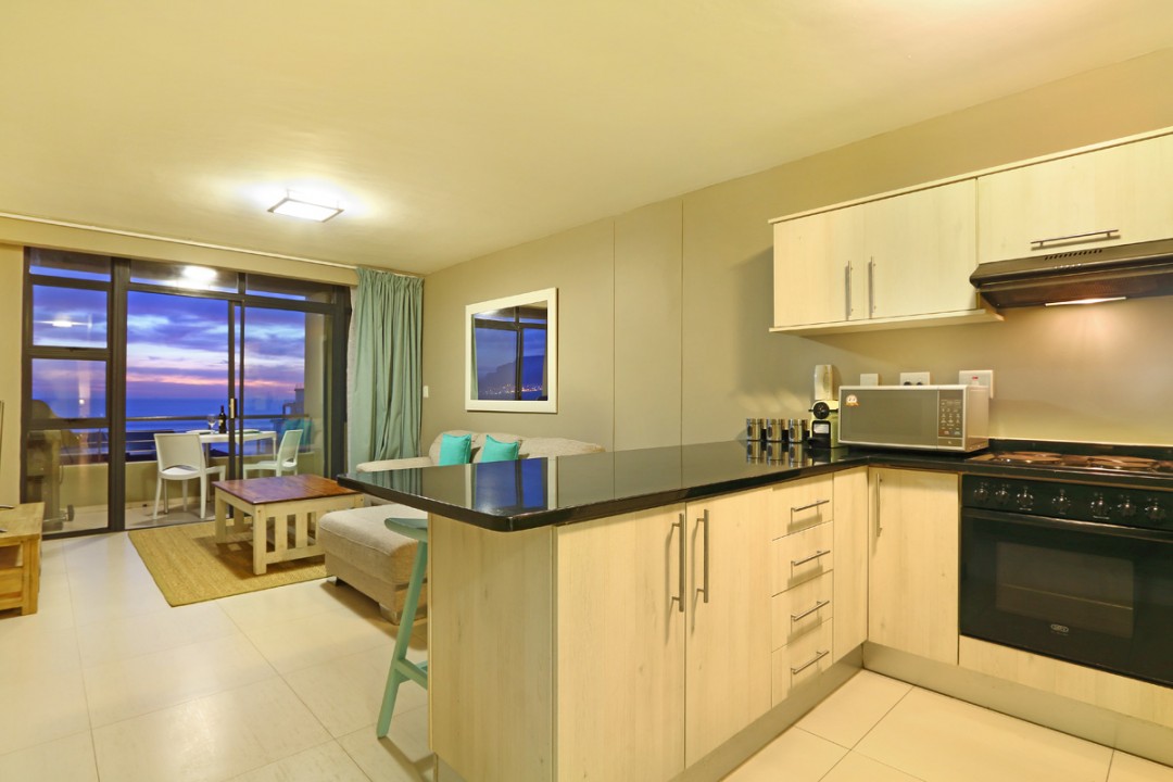 This beautiful 1-bedroom self-catering apartment offers amazing views of Table Mountain and the Atlantic Ocean, and is equipped with all the modern day high-quality essentials for a wonderful holiday.