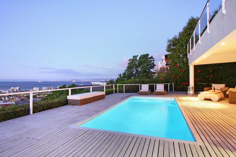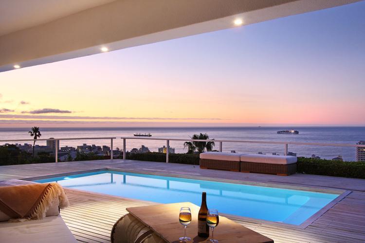 La Vue is a gorgeous, two bedroom luxury apartment on the hills of Sea Point with breath-taking views of the Atlantic Seaboard. A private deck with large pool is the perfect place to lounge, relax and enjoy the majestic sunsets of the Cape.