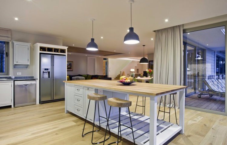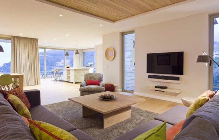 You reach the house along a deck walkway from the drive and enter into the large, open plan ground floor with two seating areas, including a state of the art TV/DVD system. The large dining table seats ten or you could also choose to sit around the central island in the kitchen –  if you do manage to find a kitchen anywhere in the world with better views please let us know! There is also a large sun room with fully retractable glass doors, complete with indoor BBQ, table and seating area.