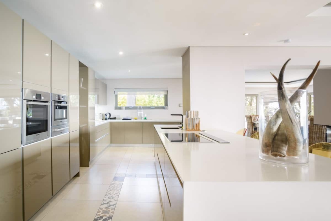 The ultra-modern, open plan kitchen has all modern amenities including a movable extractor.