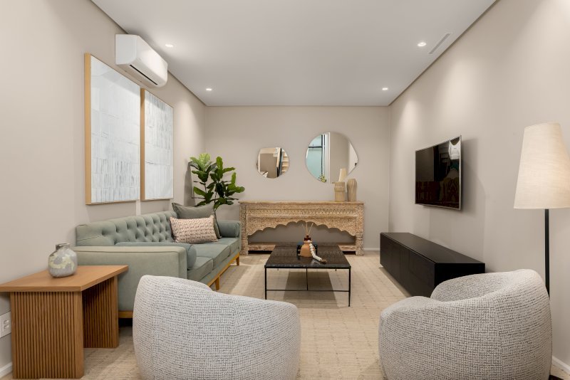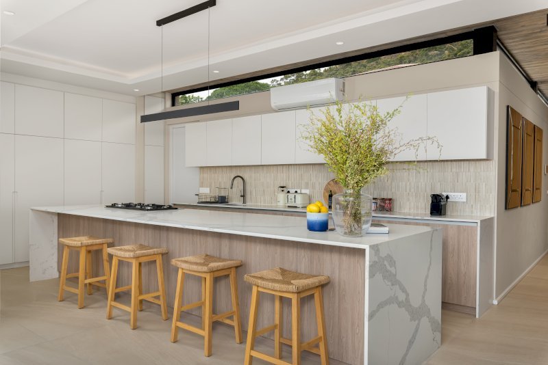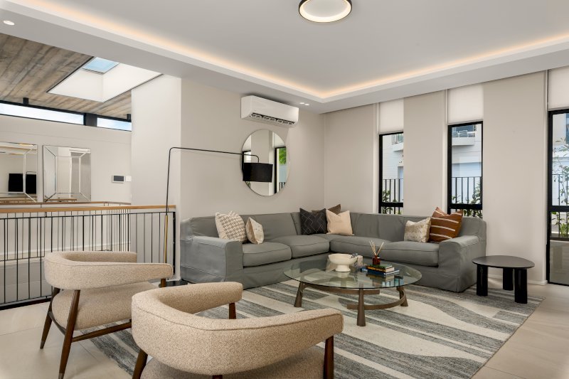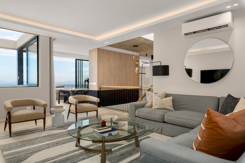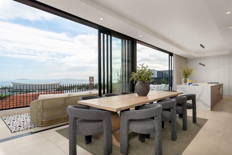Welcome to your serene retreat in the heart of Green Point. This contemporary 4-bedroom home blends comfort, modern design, and breathtaking views throughout its multi-level layout. Natural light flows in through indoor garden spaces, while the main living area opens to a spacious balcony with a large 10-seater dining table. Perfect for relaxed meals, sunset drinks, or simply taking in the city and mountain scenery.