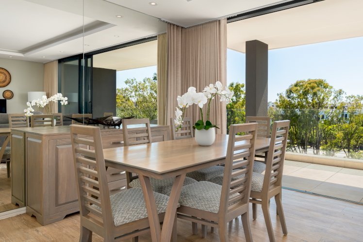 The apartment has a spacious layout with an open plan kitchen, dining, and lounge area that opens onto a large enclosed balcony overlooking the swimming pool, the perfect place to enjoy one of the best climates in the world!