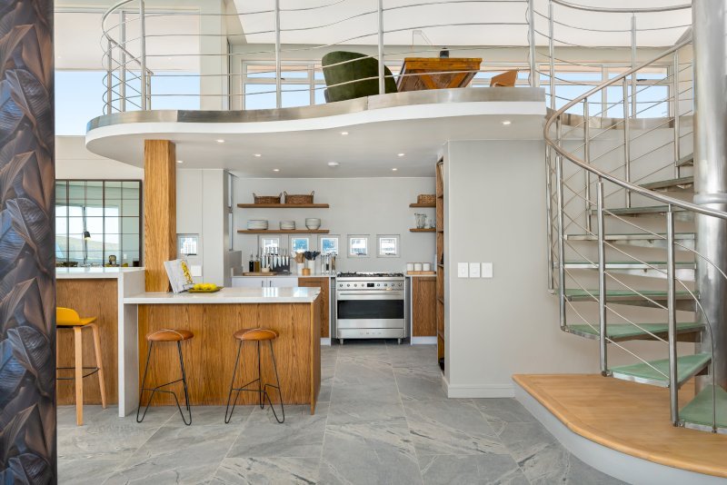 The kitchen is fully equipped and fitted with high-end appliances, a separate scullery and a large central island. A Nespresso machine, Smeg Gas Range and gorgeous views makes this kitchen any chef’s dream.