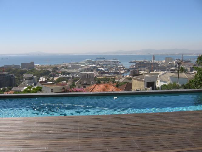 Modern Double Story Villa nestled at the top of Green Point. Views of the Suburb and the Atlantic Ocean. Gorgeous 4 bedroom Villa. This Villa has a beautiful serene feeling to it.