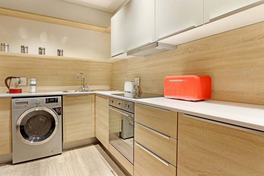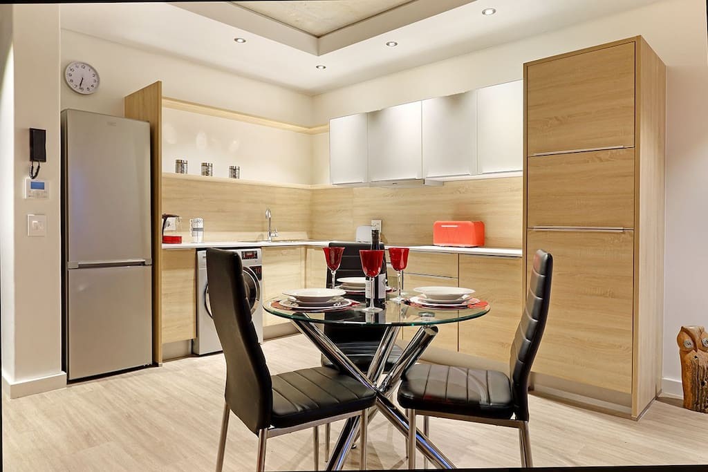 The main bedroom, with a queen-size bed, comfortable furnishings and plenty of cupboard space, has an en-suite bathroom that includes a double shower. Guests enjoying a stay here have high-speed internet access. Parking is available in the basement with access-controlled entry. Guests can access the apartment floor via an elevator. The complex offers 24-hour security with CCTV cameras.