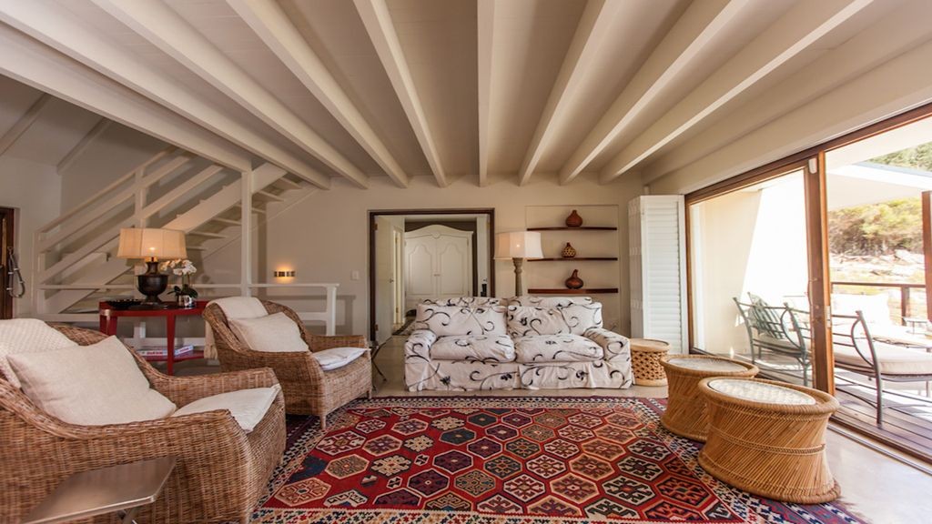 Three beautiful bedrooms (each with its own bathroom), and stunning open-plan living and dining give on to a wide wooden deck – the perfect spot for enjoying a glass of the Cape’s best.