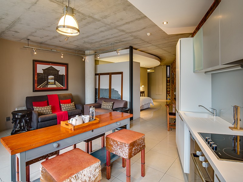 Urban chic meets modern living in a studio apartment at Metropolis. These studio apartments are uniquely furnished offering neat and well equipped kitchen/dining areas and a beautifully positioned lounge with views of Table Mountain. Make a studio apartment your ideal base for corporate and leisure travel in Cape Town.