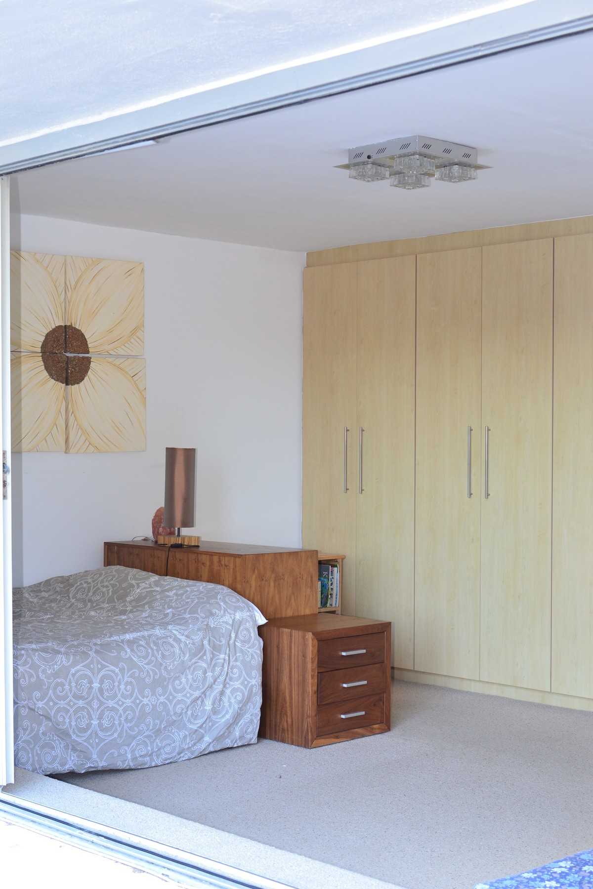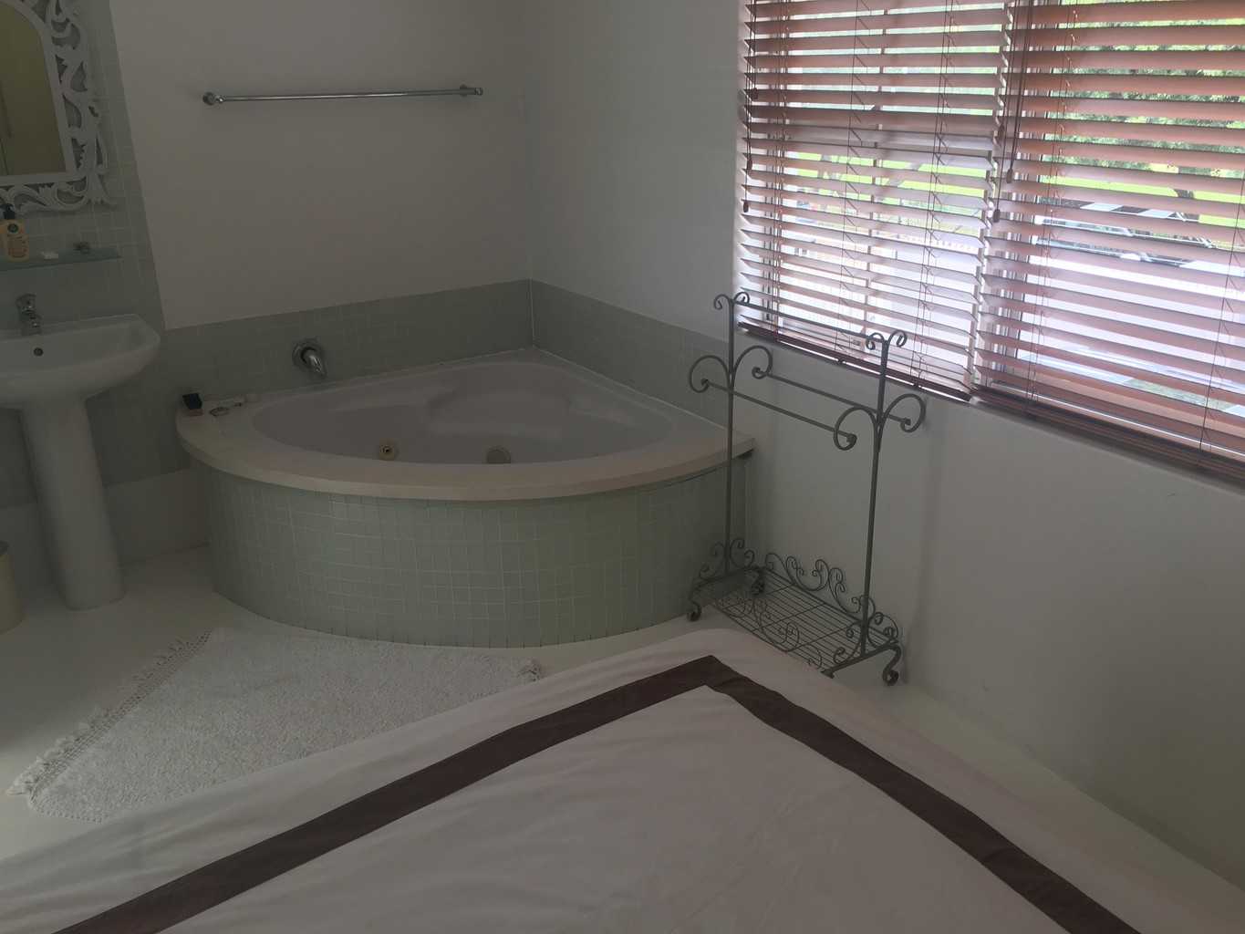 The two bedrooms are upstairs both have queen size beds. The main bedroom has a bath in the room and the second bedroom has a shower. There is air-con in the 2nd bedroom. There is a deck that leads off the bedrooms with a slight ocean view.