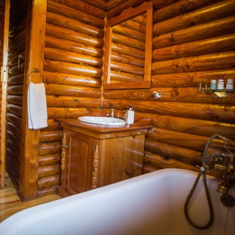 This wooden chalet consists of 2 bedrooms and 1 bathroom.