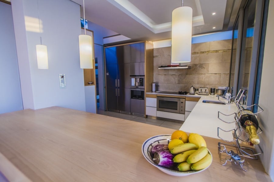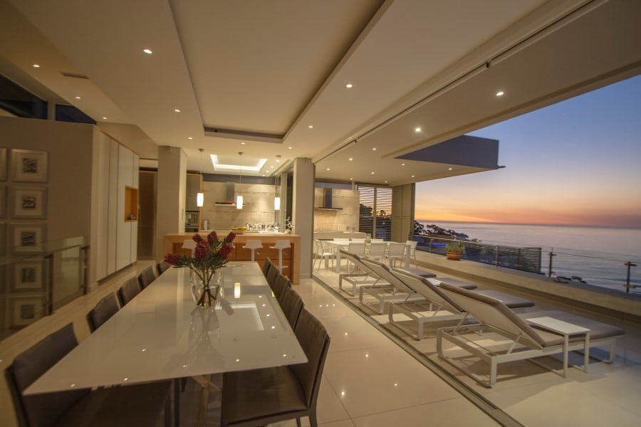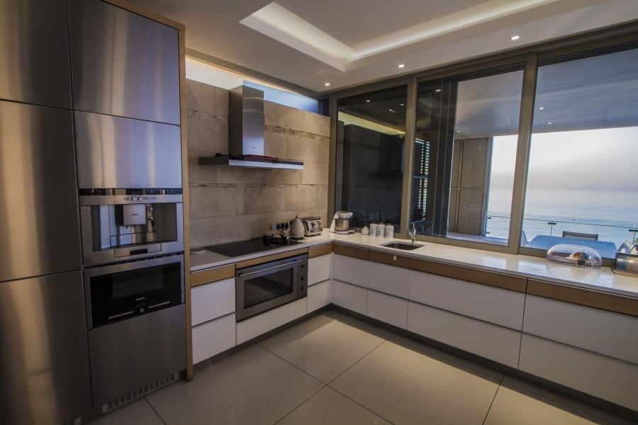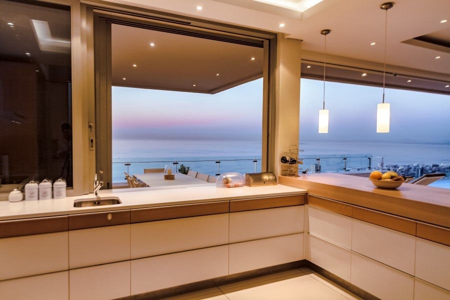 The kitchen also enjoys the expansive views and seemless flow afforded in the home, allowing everyone to take in the beauty of Cape Town below.