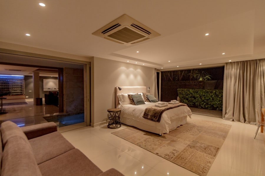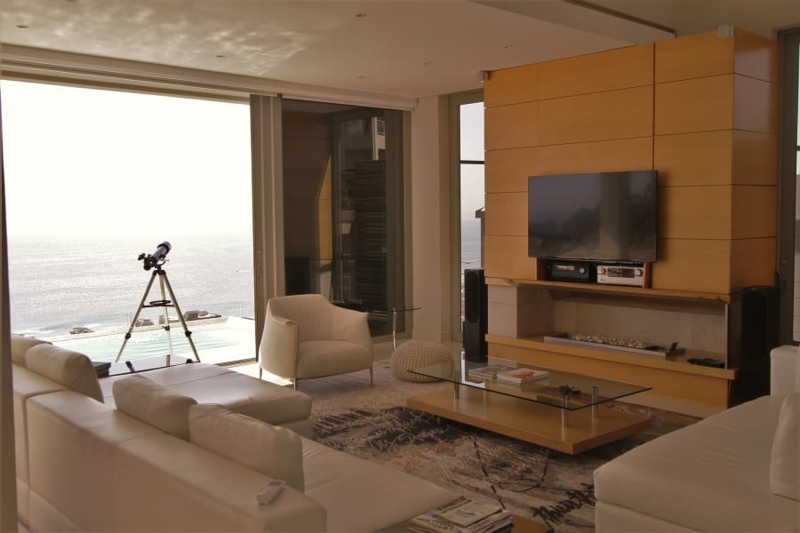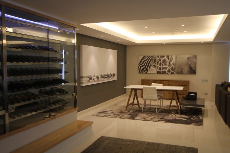 The lowest level of the home also offers ease of access to the wine wall, the second pool, the sauna and the second “kitchenette”. Nautica offers unparalleled views of Robben Island, Lions Head and The Cape West Coast in the distance.