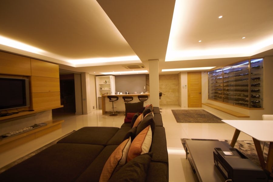 The second lounge, situated on the lower level of the home, offers a comfortable space to watch your favourite movies, on large comfortable loungers alongside the electronic fireplace, a welcome feature when curling up in winter.