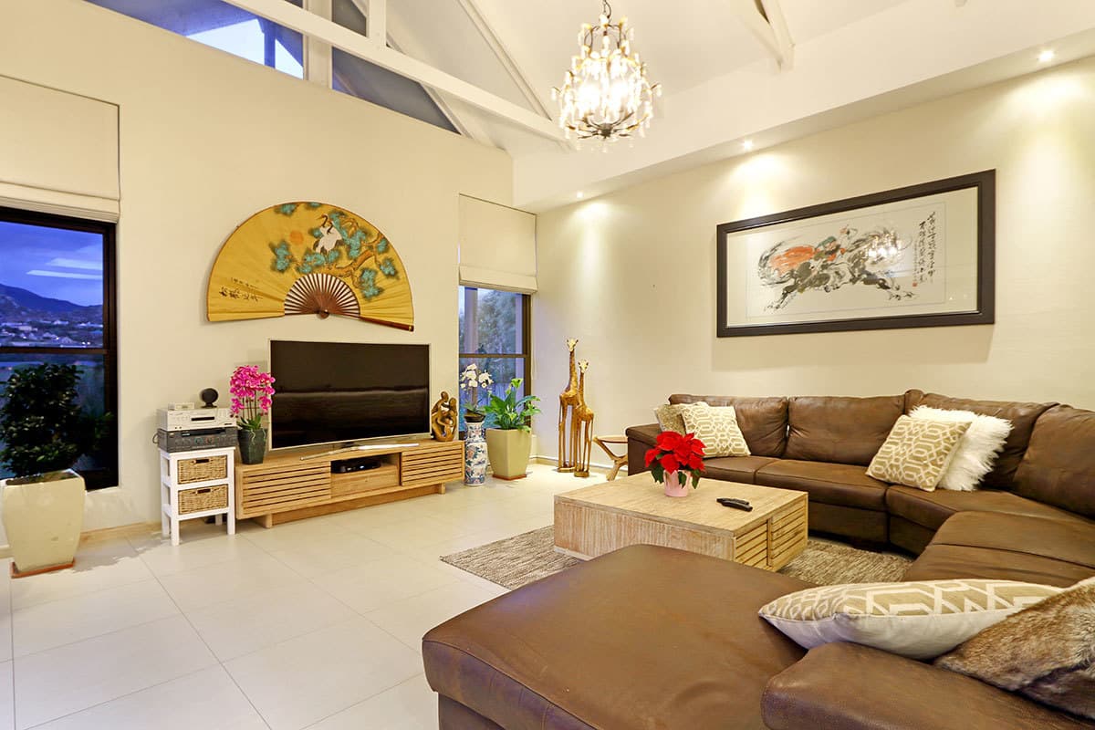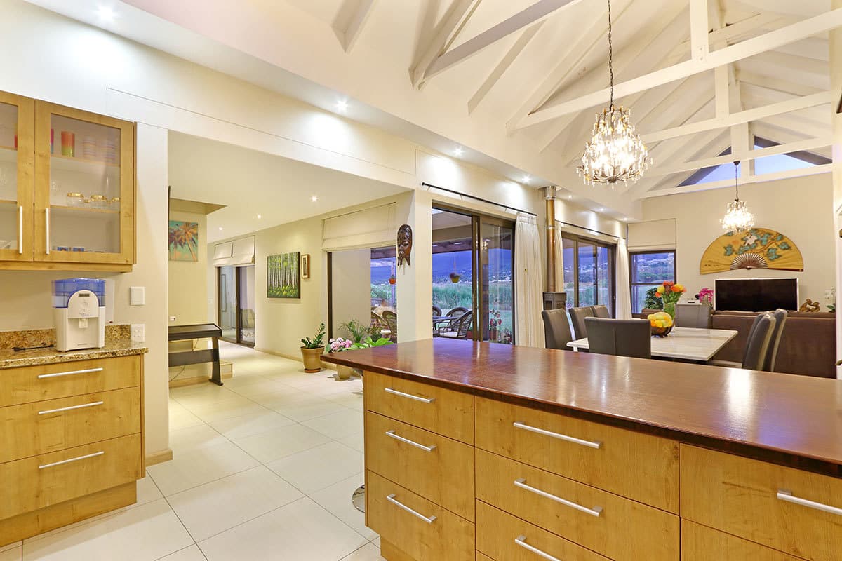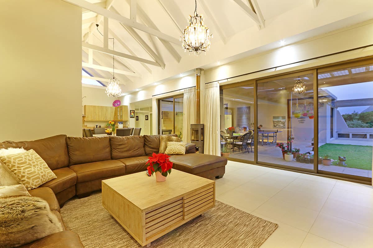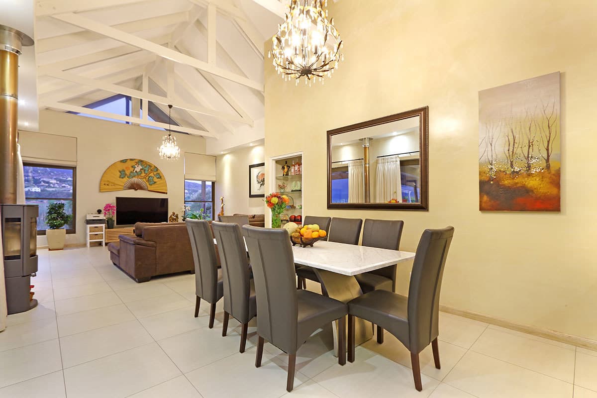 After entering through the security booms you drive towards this Lake Michelle self catering accommodation Noordhoek. It’s like driving through a peaceful neighbourhood. The view over the lake and mountains welcomes you as you arrive at the house.