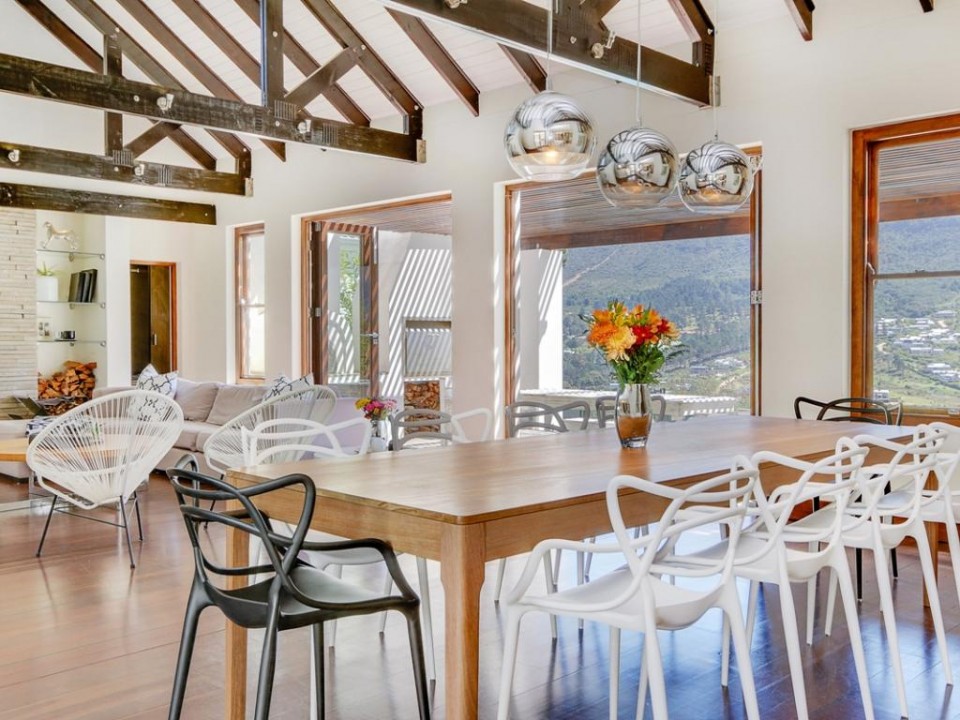 Open Plan living areas Lounger with TV and DSTV Wood Fireplace Dining room table seats 8