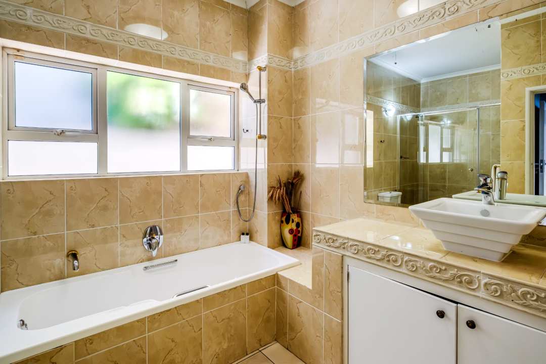 The lower level is entirely dedicated to accommodation, with four en-suite bedrooms that open directly onto the garden via large glass sliding doors, allowing guests to enjoy the outdoor spaces and pool at their leisure. A separate flatlet provides an additional bedroom with kitchenette and en-suite bathroom, ideal for guests seeking extra privacy.