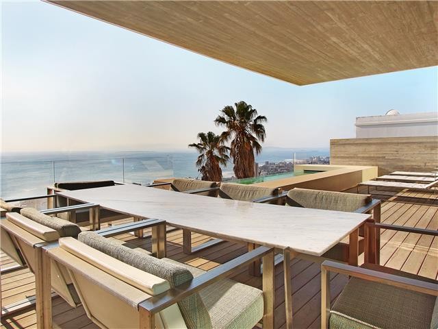 Situated high up against the iconic Signal Hill, this five bedroomed villa has sweeping views of the Atlantic Ocean.