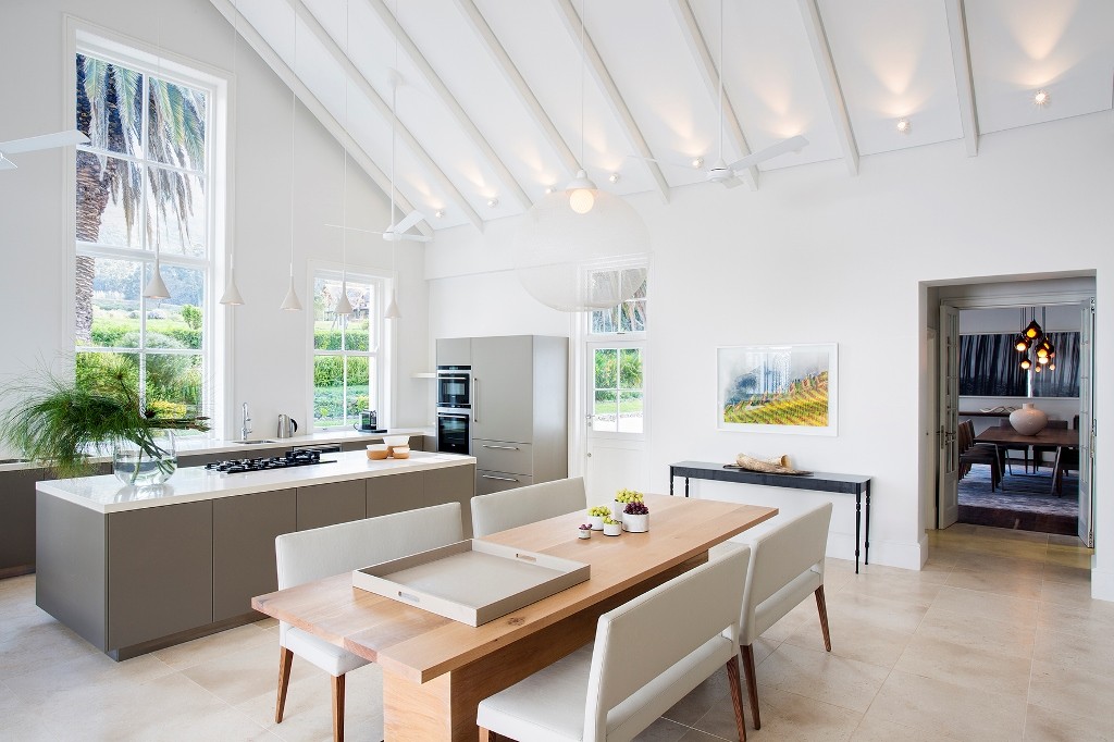 The Oldenburg Homestead has spectacular 360 degree views of mountains, gardens, vineyards and olive groves and offers complete serenity, exclusivity and privacy. There are two large outdoor entertaining areas and a large gated pool within the gardens. The sparkling pool and outdoor braai lapa are idyllic spaces which lend themselves to connecting with friends and family. Oldenburg Vineyards is ideally located, with some of South Africa’s best restaurants within close proximity. The charming university town of Stellenbosch is within easy reach.
