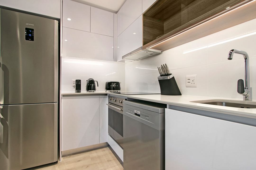 The apartment leads you into an open plan, fully equipped kitchen, dining and lounge area. The Bedroom comprises of a queen size bed en-suite bathroom fitted with a shower.