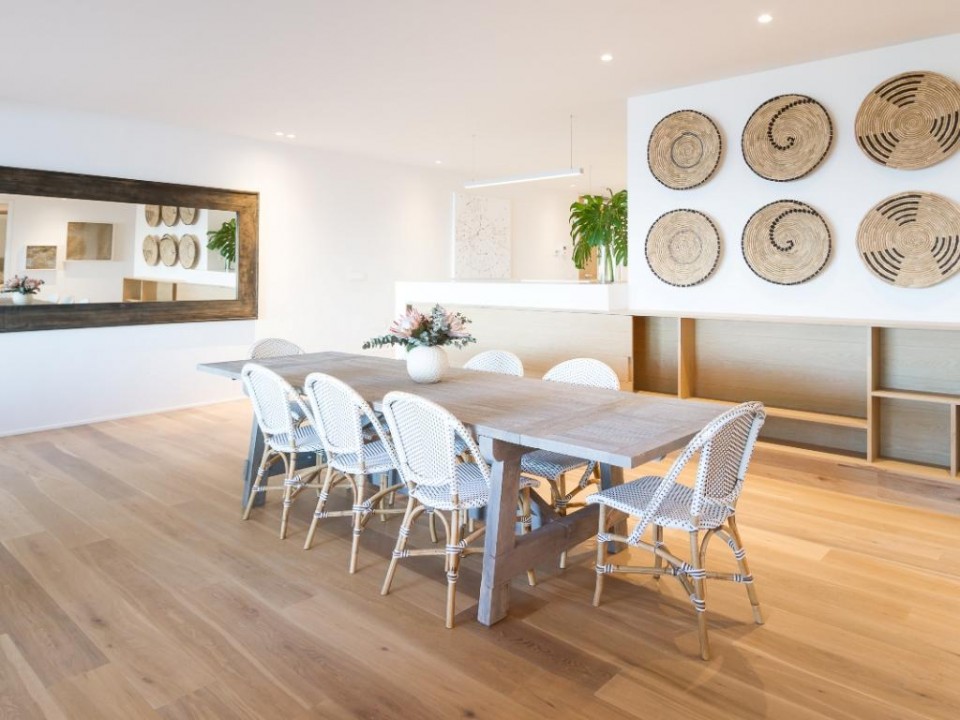 As you walk in you are met with a modern designer kitchen, equipped with top of the range appliances. This is open plan to a large dining area, which seats 8 guests and a TV lounge with comfortable couches.