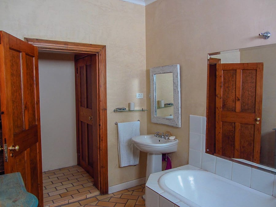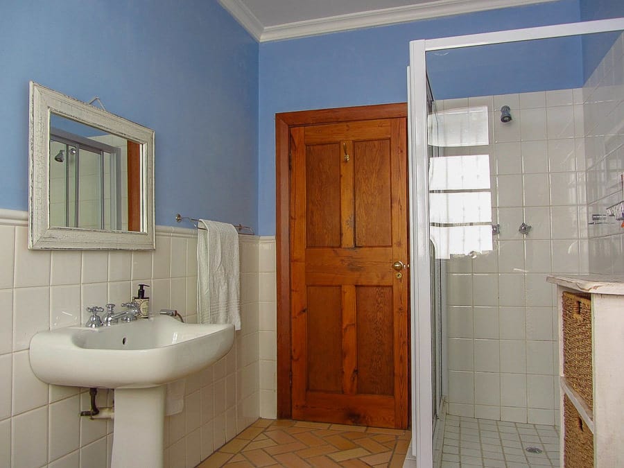 The main bedroom has a bathroom directly next to it and the other 2 bedrooms share the other bathroom. The cottage has a private bathroom.