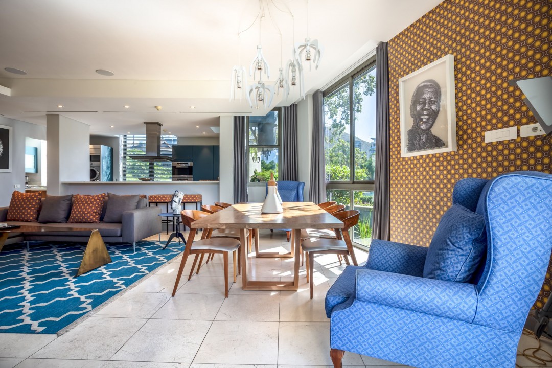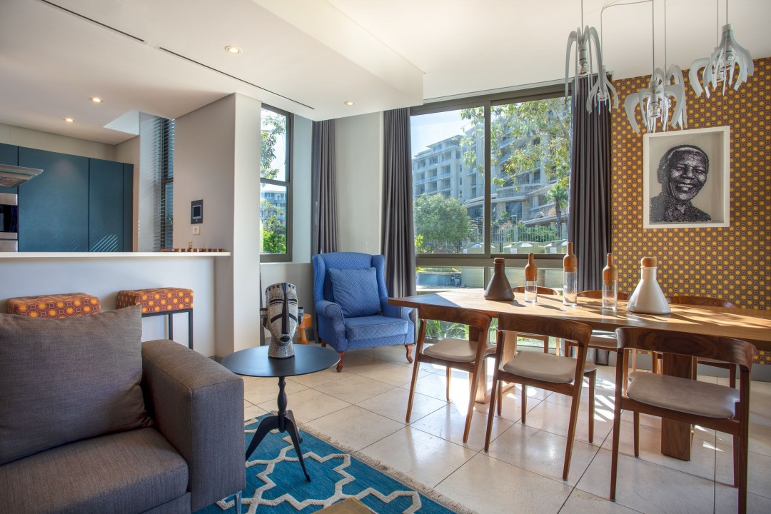 Modern luxury and style. This apartment welcomes you and will immediately make you feel at home. Furnished with a modern African twist, with a beautiful infusion of colour and vibrancy, as only Africa can do! This apartment provides comfort no matter the reason for your stay. The apartment has a lovely terrace, and a sense of privacy and calm as it is located at the end of the block of apartments. Everything is thought of in this gorgeous apartment to make your stay wonderful.