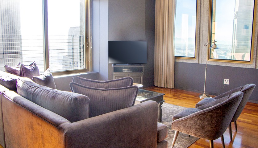 The ceiling-to-floor windows allow for plenty of light and commanding views of the City and Table Bay Harbour.