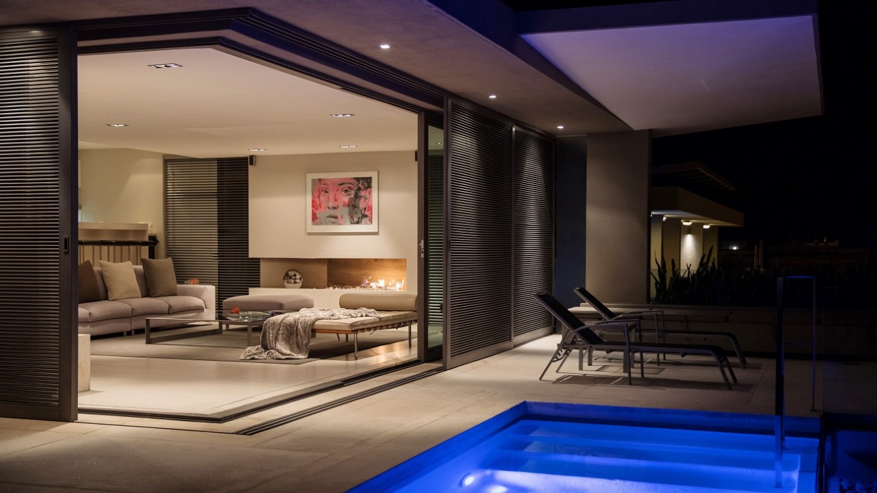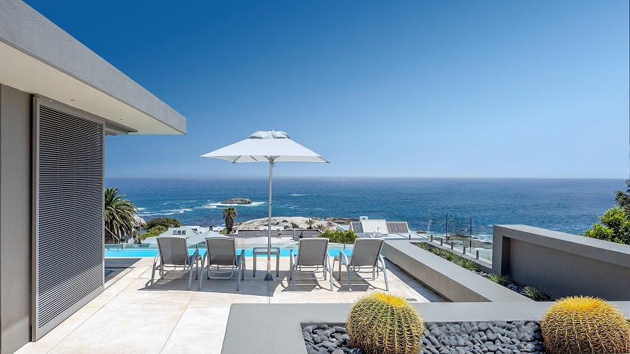 5 bedroom all en-suite property situated in one of the most unique positions in Cape Town. . With its contemporary design, a 100m2 outside entertainment area with panoramic views and an 8-meter glass fronted pool, this property offers a unique level of sophistication and style. Situated within easy walking distance to Camps Bay beachfront and only 100m to Bakoven Beach, this property is fully serviced.