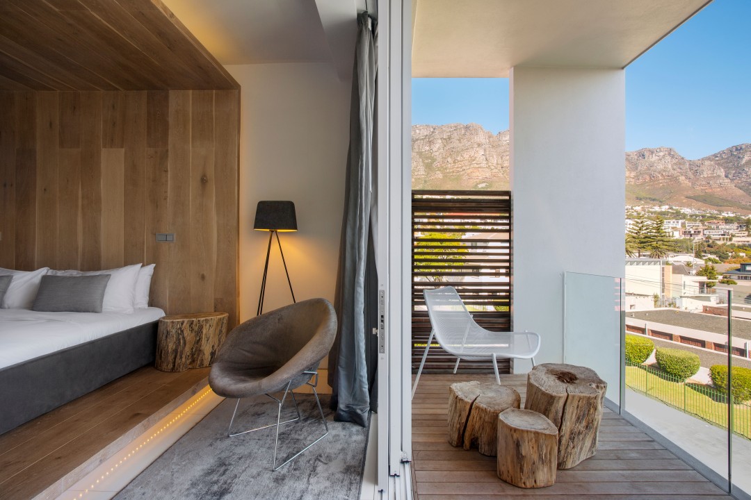 Luxurious rooms featuring a private balcony for admiring the splendid views of both Table Mountain and the Twelve Apostles.
