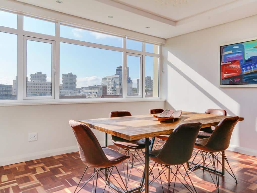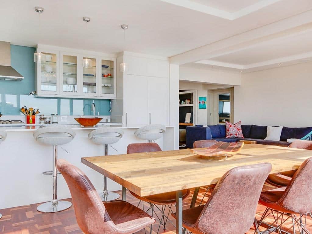 Flat screen TV with DSTV 6 seater dining table Access onto balcony with seating for 2 Sea views