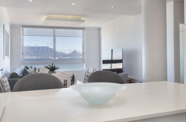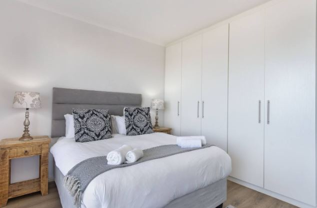 This exquisite 2 bedroom unit is perfect for a group of friends or a family looking for an unforgettable self-catering stay. The open-plan living space exudes relaxation, offering a fully equipped kitchen with all the culinary essentials, a dining area that comfortably seats four people, and cozy lounge area with a flat-screen TV where you can kick up your feet and switch off from the day-to-day stresses. Leading out from the lounge, through glass sliding doors is a gorgeous undercover balcony with outdoor furniture where you can sit for hours taking in the fresh sea breeze and breathtaking views of Table Mountain and the long stretch of majestic beaches.