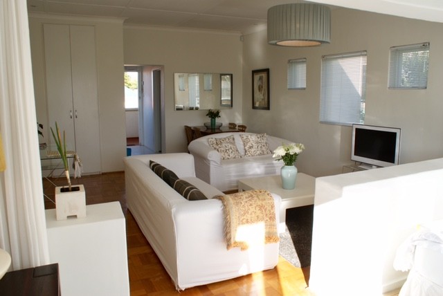 This fully furnished large, studio apartment is located a short distance from the Cape Standard in a quiet street with both mountain and sea views.