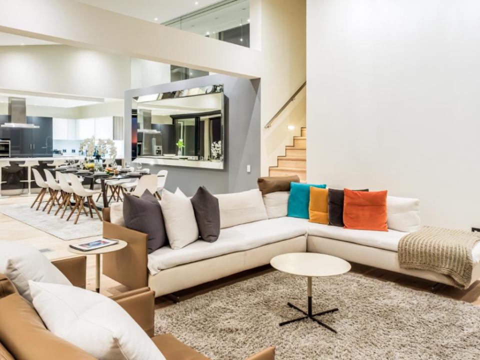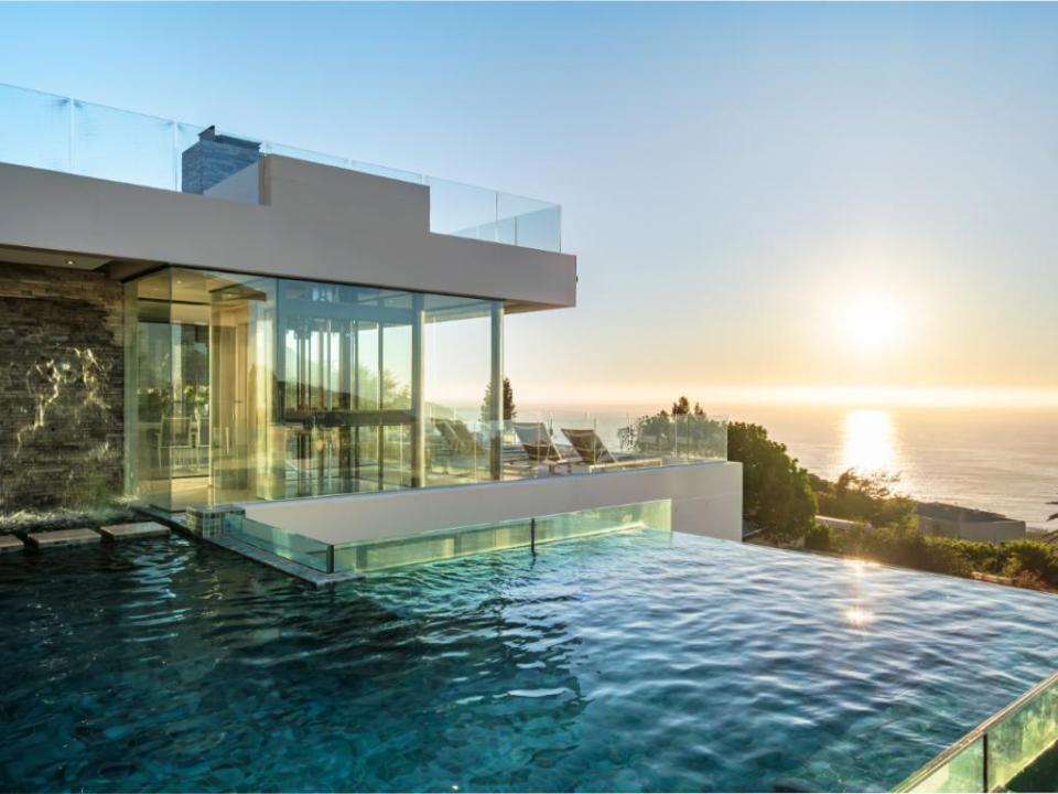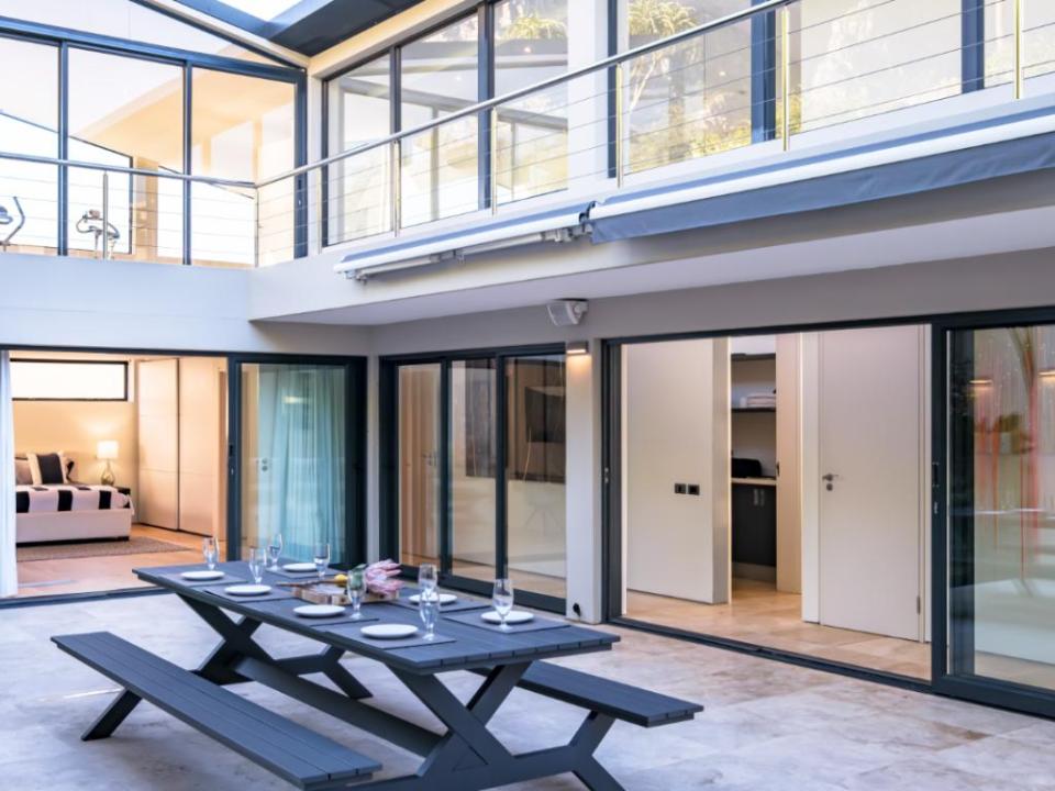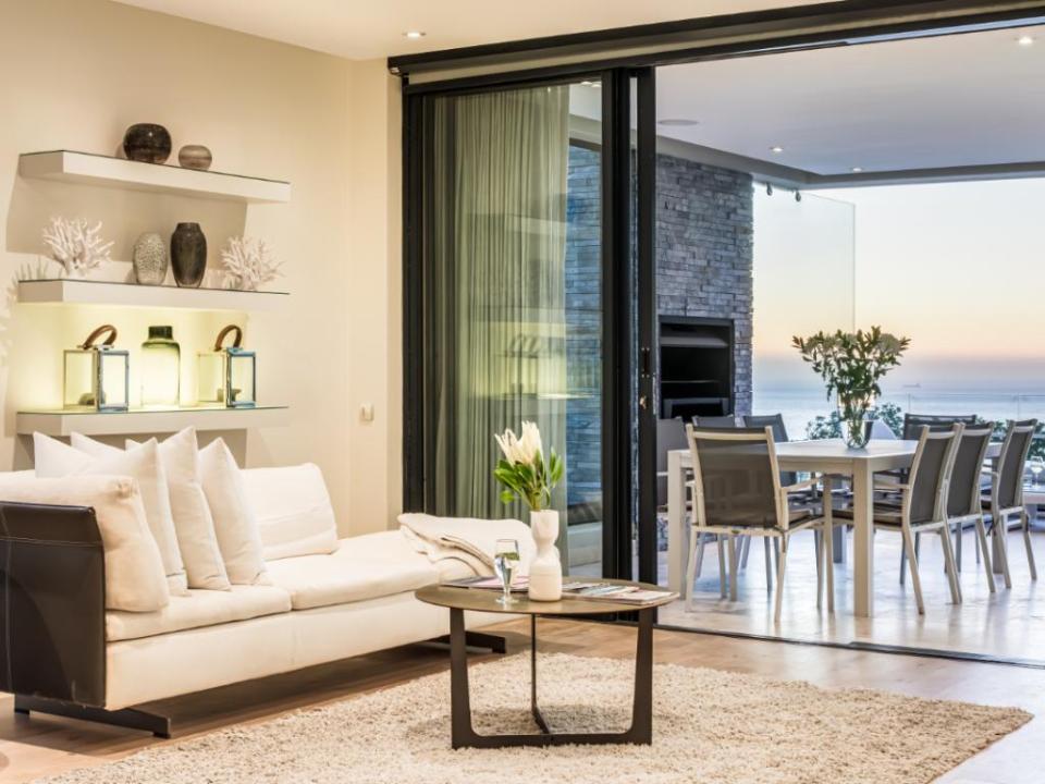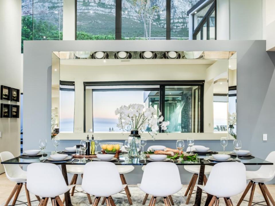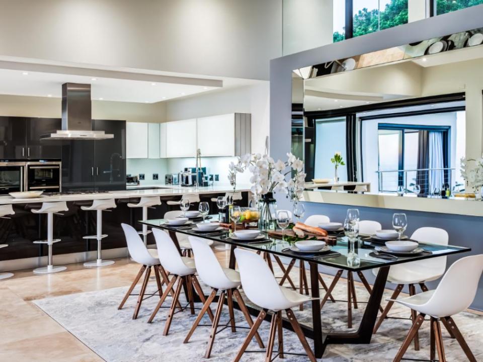 This modern property is situated at the top of Camps Bay and has great views of the sea and mountains no matter which area of the house you are in. Inside, the rooms are luminous and spacious.