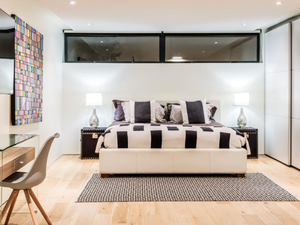 Bedroom four is on the lower level close to the elevator and below the living room. It is also en-suite, has a private balcony with gate access up to the backyard and has it’s own kitchenette and separate entrance. The fifth bedroom is located under the master bedroom, also with it’s own private entrance and en-suite.