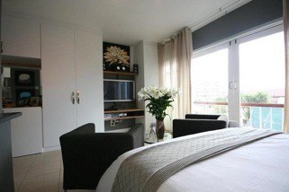This luxuriously refurbished sunny, self-catering, studio apartment is furnished to the quality of any hotel suite of the same size irrespective of the rating. It offers views of the leafy suburb of Green Point and the surrounding area.