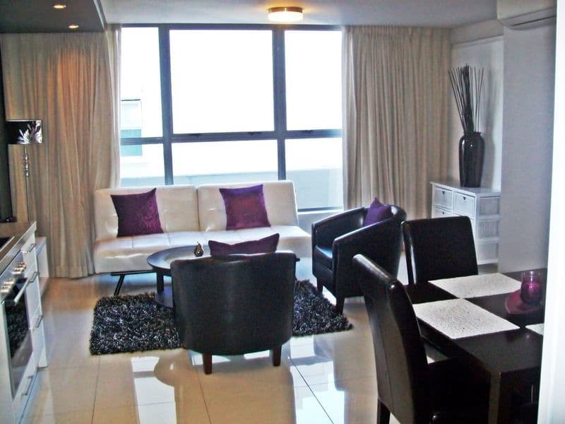 This fully furnished apartment is located within a brand new apartment block that is situated in the heart of Green Point, directly across from the Green Point Urban Park and the golf course. 105 The Legacy is also conveniently located close to the V & A Waterfront and the Cape Quarter, both of which offer trendy restaurants and shops.