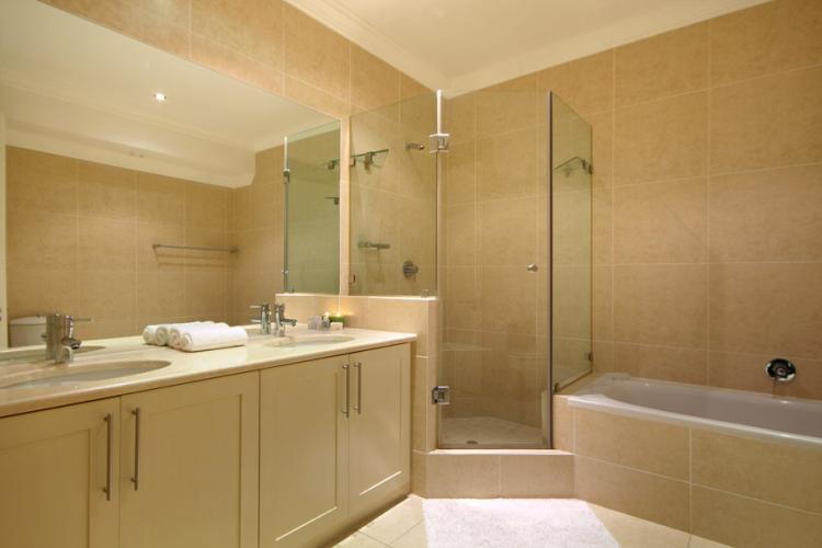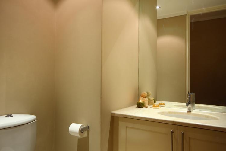 For the kids there are two single beds available in the next room that could easily be transformed into a king sized bed if needed and also features a two-seater couch for some solitary relaxation. The third room just across the way sleeps two people on a queen size bed and a beautiful dark brown leather chair gives a feeling of luxury in this modern contemporary styled bedroom. A full separate bathroom and a guest toilet can be shared between the two rooms.