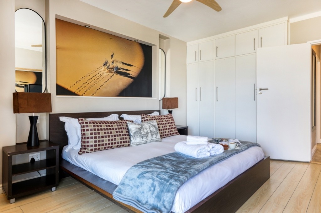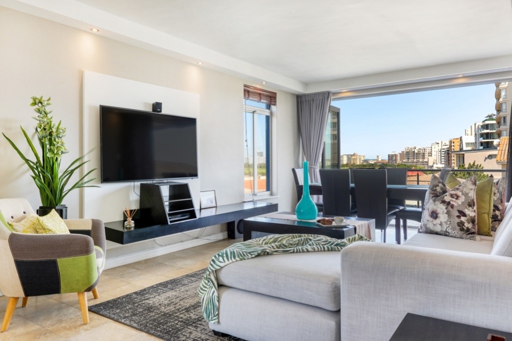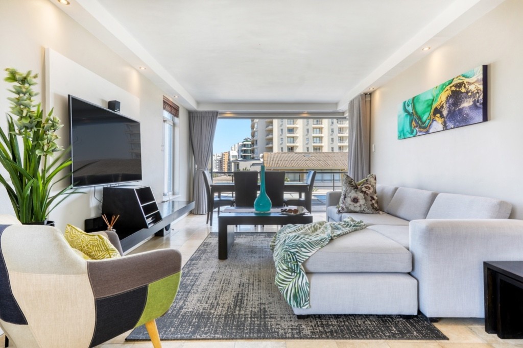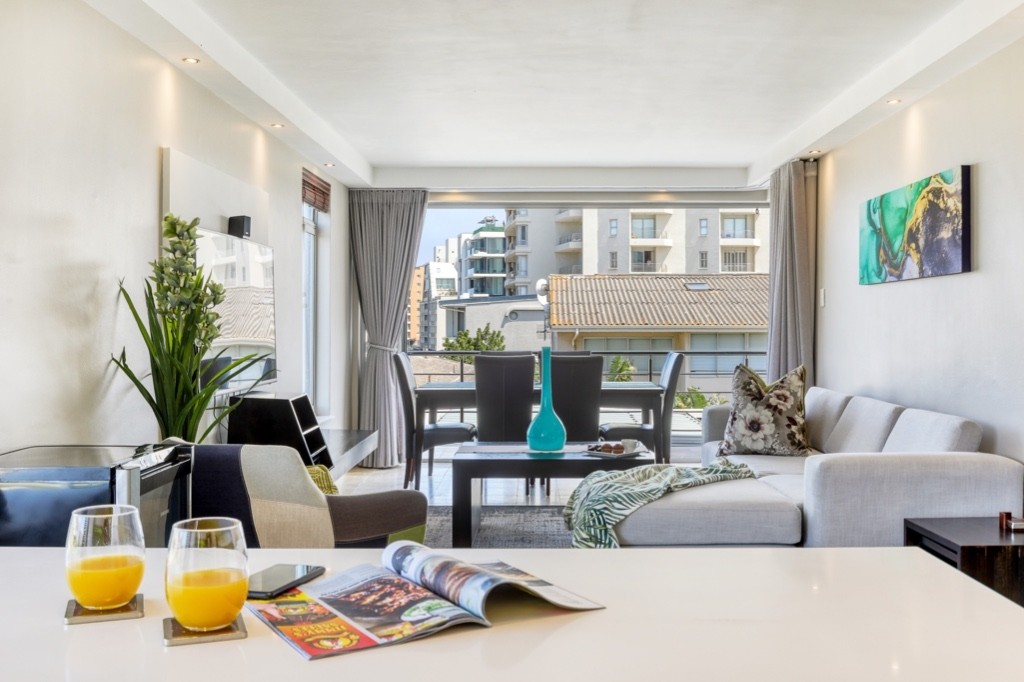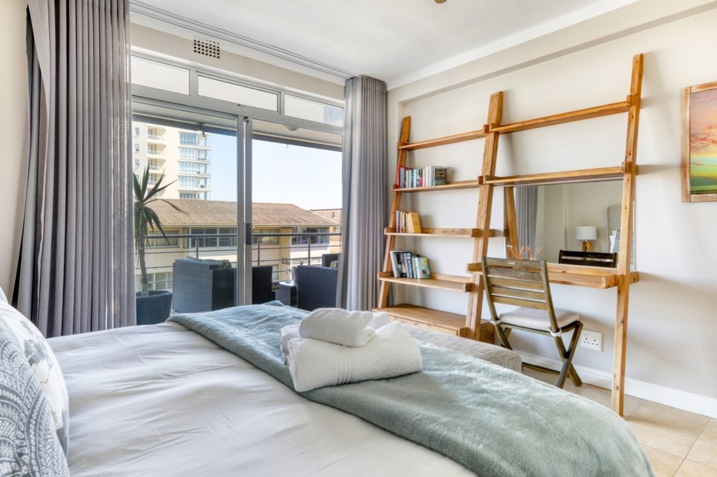 The apartment is situated directly across the road from the Mouille Point lawns and beach and has secure off-street, undercover parking. The apartment is within walking distance of the beautiful Green Point Urban Park, several excellent restaurants, and the V&A Waterfront.