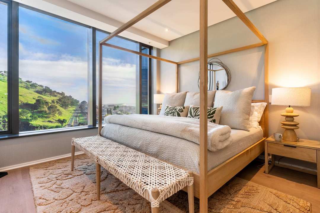 This newly refurbed, sun-drenched apartment features expansive floor-to-ceiling windows that reveal stunning views of both the ocean and the city’s skyline.
