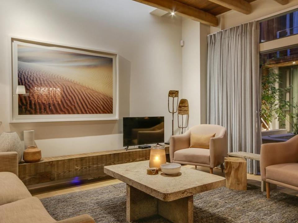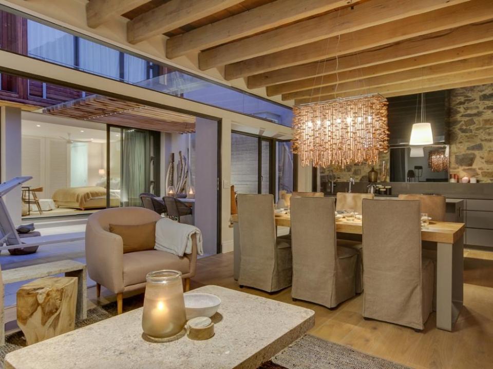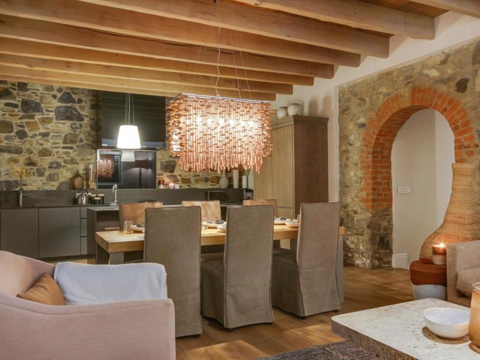 The heart of this home is the open plan living area, which is truly exquisite. Exposed wooden beams provide character while the chandelier offers a touch of elegance. The room contains a modern kitchen with a breakfast bar, formal dining for 6 guests and a beautiful TV lounge with satellite channels.